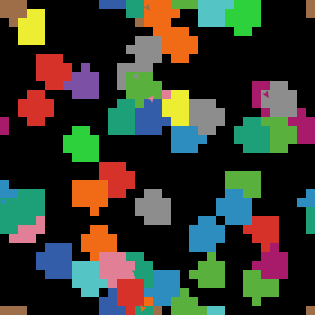 to setup ca crt 50 ; make 50 turtles [ setxy random-xcor random-ycor ; scatter them around the world ] end ; turtle procedure -- find closest turtle and move towards it to cluster ; figure out what turtle, other than ourselves, is closest let closest-turtle min-one-of other turtles [distance myself] ; now move ourselves towards that turtle face closest-turtle ; but first "wiggle" a little rt random-float 20 lt random-float 20 fd 1 end ; turtle procedure -- make a colored splotch around myself, the same color as me to splotch ask patches in-radius 2 [ set pcolor [color] of myself ] end ; turtle procedure -- turn any turtle I encounter the same color as me to infect ask turtles-here [ set color [color] of myself ] rt random-float 20 lt random-float 20 fd 1 end ; Public Domain: ; To the extent possible under law, Uri Wilensky has waived all ; copyright and related or neighboring rights to this model.