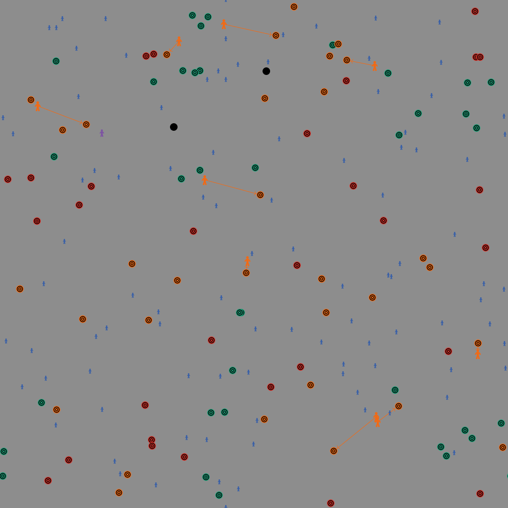 Tasking the volunteers with far-away issues is ineffective. On the other hand, not tasking them at all is bad too. The model tries to adjust the tasking radius accordingly if the Adjust-tasking-radius? switch is enabled.