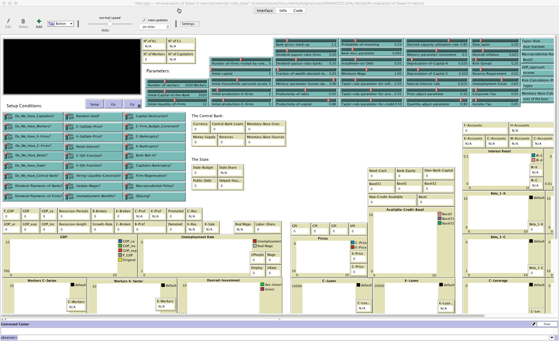 extensions [ matrix r ] ; calling the R extension and the matrix extension globals [ Taylor-Interest-Rate ; interest rate as set by the central bank P_GDP ; potential GDP GDP_1 GDP GDP_va GDP_exp ; sum of Total-Consumption and total-investment GDP_inc GDP_or Recession-lenght Recession-Periods Growth-lenght Growth-Rate Unemployment-Rate ; sum of the households without a job Unemployed-People Total-Consumption ; sum of goods sold by the consumptions firms Total-Investment ; sum of total capital sold by the capital production firms Total-Inventory-investment ; sum of inventory investments of all K-Firms Total-Inventory-investment_1 Goods-Price-Level ; sum (price * qt) / Qt sold Goods-Price-Level_1 Capital-Price-Level ; sum (price * qt) / Qt sold Capital-Price-Level_1 General-Price-Level ; General price level starting from 1 General-Price-Level_1 cpi_1 kpi_1 gpi_1 kpi ; Capital price rate cpi ; Consumption price rate gpi ; general price rate, including capital and consumption goods C-Index ; Consumption price index K-Index ; Capital price index G-Index ; General price index C-Firms ; group of firms with property consumption production K-Firms ; group of firms with property capital production Workers ; group of households with property worker Capitalists ; group of households with property capitalist Employed ; building the group with all employed workers Unemployed ; building the group with all unemployed workers Employment_1 Employment Wage Wage_1 Labor-Share_1 Labor-Share Monetary-Base Currency Money-Supply Available-Credit-Basel2 Available-Credit-Basel31 Available-Credit-Basel32 Available-Credit-Basel Capital-Buffer State-Budget Helped-Households Public-Debt Account-of-State-at-Central-Bank Central-Bank-Own-Capital C-Broken ; number of consumption firms that went broken K-Broken ; number of capital production firms that went broken B-Broken ; number of times that banks went broken Bail-outs Bail-ins Promoted ; number of workers that became capitalists Demoted ; number of capitalists that became workers Matrix-C-Firms-Bankruptcy ; input with information that will be used in calculation into R (eq 23) Matrix-K-Firms-Bankruptcy ; input with information that will be used in calculation into R (eq 23) Matrix-Basel-Buffer Beta_1-C-Firms ; parameter utilized by the banks to calculate the interest rate for the firms (eq 26) Beta_2-C-Firms ; parameter utilized by the banks to calculate the interest rate for the firms (eq 26) Beta_1-K-Firms ; parameter utilized by the banks to calculate the interest rate for the firms (eq 26) Beta_2-K-Firms ; parameter utilized by the banks to calculate the interest rate for the firms (eq 26) Beta_1-Banks ; parameter utilized by the banks to calculate the interest rate for the firms (eq 26) Beta_2-Banks ; parameter utilized by the banks to calculate the interest rate for the firms (eq 26) Mjc ; parameter utilized in the process "SubF-Call-Matrix-formation", related to C-Firms Mjk ; parameter utilized in the process "SubF-Call-Matrix-formation", related to K-Firms Mjb ] breed [Households Household] ; agent class breed [Firms Firm ] ; agent class breed [Banks Bank ] ; agent class directed-link-breed [Hireds Hired ] ; link used to link firms to the worker directed-link-breed [Owners Owner ] ; link used to link firms to their owner/capitalist Households-own [ Worker? ; property of the household, yes if it is a worker, not if it is a capitalist Bankrupt? Employed? Human-Wealth ; parameter to calibrate how much of the entire wealth will be used for consumption Current-Income ; the salary if it is a worker, the profit if it is a capitalist Bank-Account-Household ; the total of wealth of the households held with the bank Desired-consumption ; theorical value the household want to consume this period Consumption ; real value the household consumed C-Expenses ; expenditures in consumtion goods Interest-Earned Price-List ; list with the prices of firms the household visited last period ] Firms-own [ C-Firm? ; property of the firms, yes if it is a consumption production firm, not if is a capital production firm Owner? Price ; last price practiced by the firm Demand ; last quantity demanded Production ; actual production of the firm Inventory-investment ; stock of machines produced this period but not sold Stock ; amount available for sales (inventories) Delta ; parameter used to calculate new price Number-of-Employees ; actual number of employees of this firm Desired-Employees ; ideal number of employees for this firm Vacancy ; number of opened places at this firm for new workers New-Credit-Available ; additional credit available for the firm at a particular moment Max-Credit-to-Firm ; maximum amount of loans a firm may get in its balances Revenue ; sum of quantity sold times the price K-Expenses ; this only applies to C-Firms and it is the nominal expenses in capital (net investment) Sales ; sum of quantity sold last period Profit ; revenue less the expenditures EBIT ; Profits Before Taxes Dividend ; part of the profit given to the owner, from firms and banks Need-Cash ; money that will be asked to the bank as a new loan Bank-Account-Firm ; money available at the bank owned by the firms Bank-Account-Firm_1 ; money available at the bank at the beginning of the period Leverage ; debts of the firm divided by their assets, including the debt, ranging between 0 and 1 (0 is zero debt, and 1, all assets are debt) Assets ; sum deposit at bank and stock available for sales Liabilities Equity Current-Retail-Loan ; sum of loans with the retail bank Interest-Retail ; actual interest rate applied to this firm by the retail bank Cases-of-Bankruptcy ; the probability to go bankruptcy by this firm, calculated by the retail bank Interest-Pay ; sum of interest rate payed last period Installment-Pay ; sum of the installment payed last period T-expected ; the expected life span for this firm Probability-of-Bankruptcy ; probability of dying for each and every firm Capital ; property of the C-firm