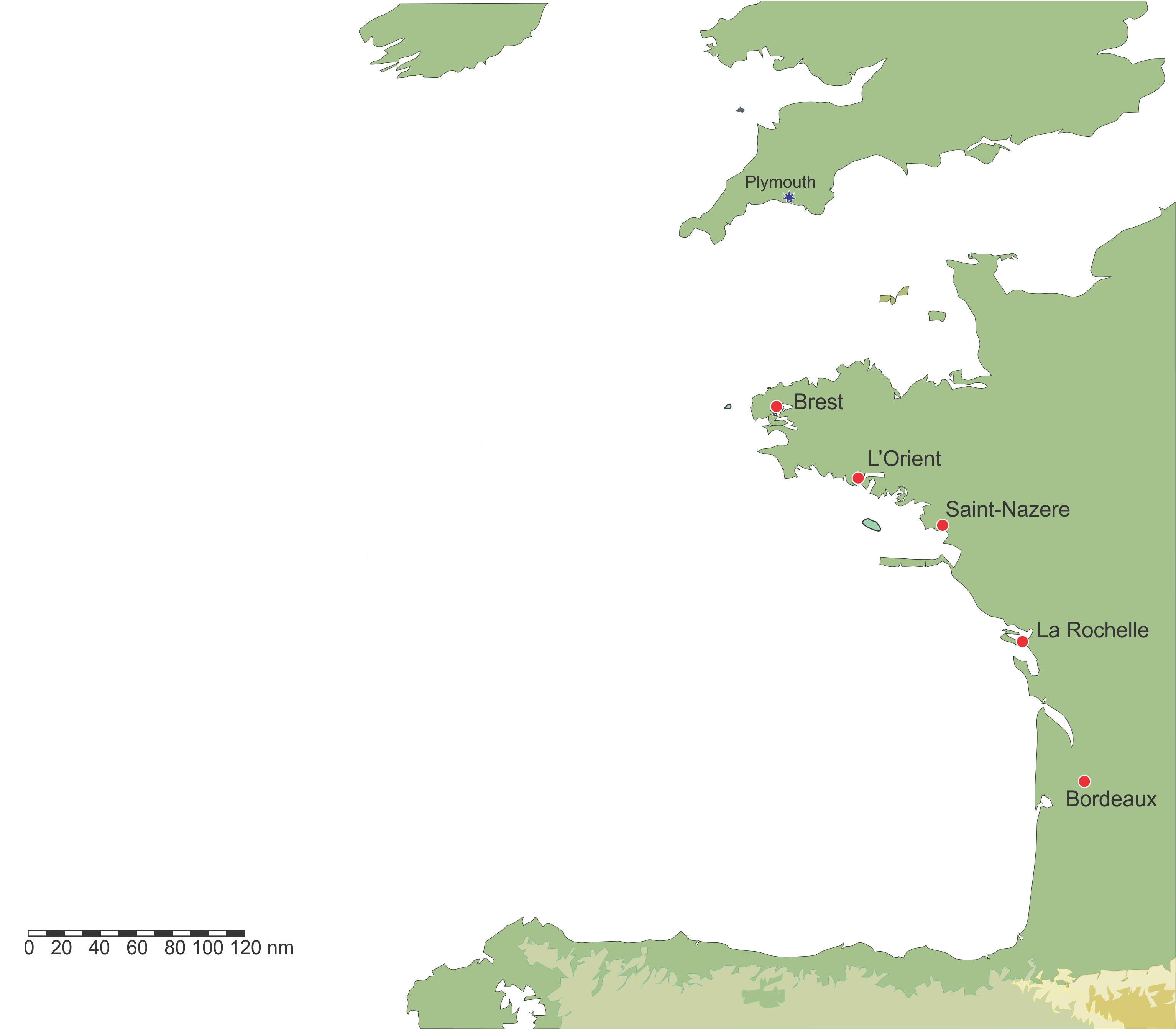 globals [Brest LOrient SaintNazere Plymouth LaRochelle Bordeaux