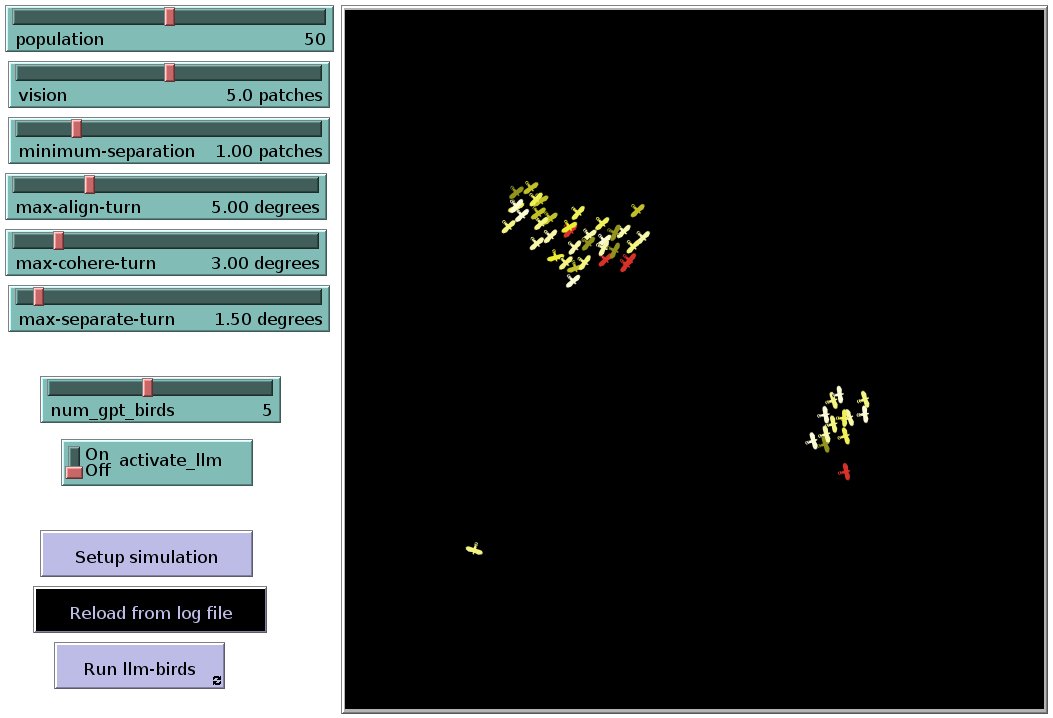 Download the 'Flocking GPT: OpenAI LLM and rule based agents' modelDownload this modelEmbed this model